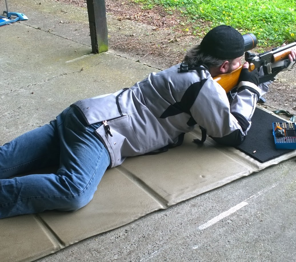 This involves prone single shot precision shooting using aperture iron sights at ’round bull’ targets. A steady hand is needed!